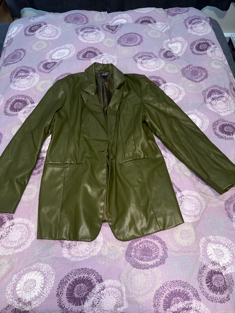 Grænn leðurjakki úr Primark. Stærð 44, lítið notaður.