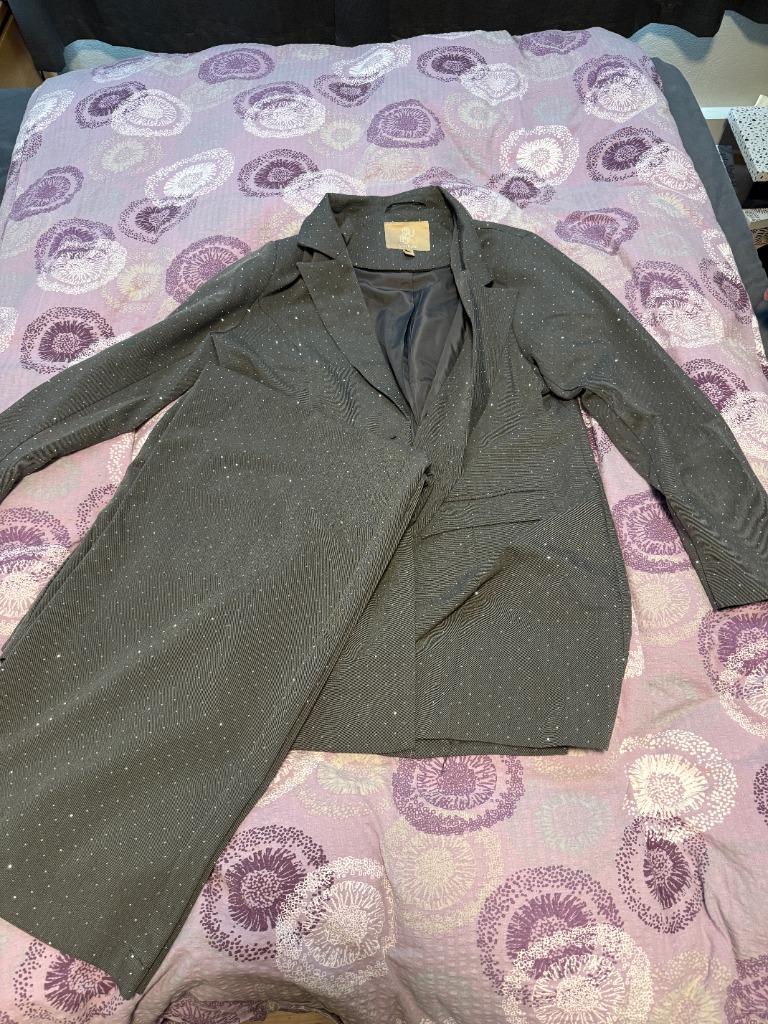 Stærð 44. Útvíðar dragtarbuxur, oversized blazer og ermalaust corset. Lítið notað.