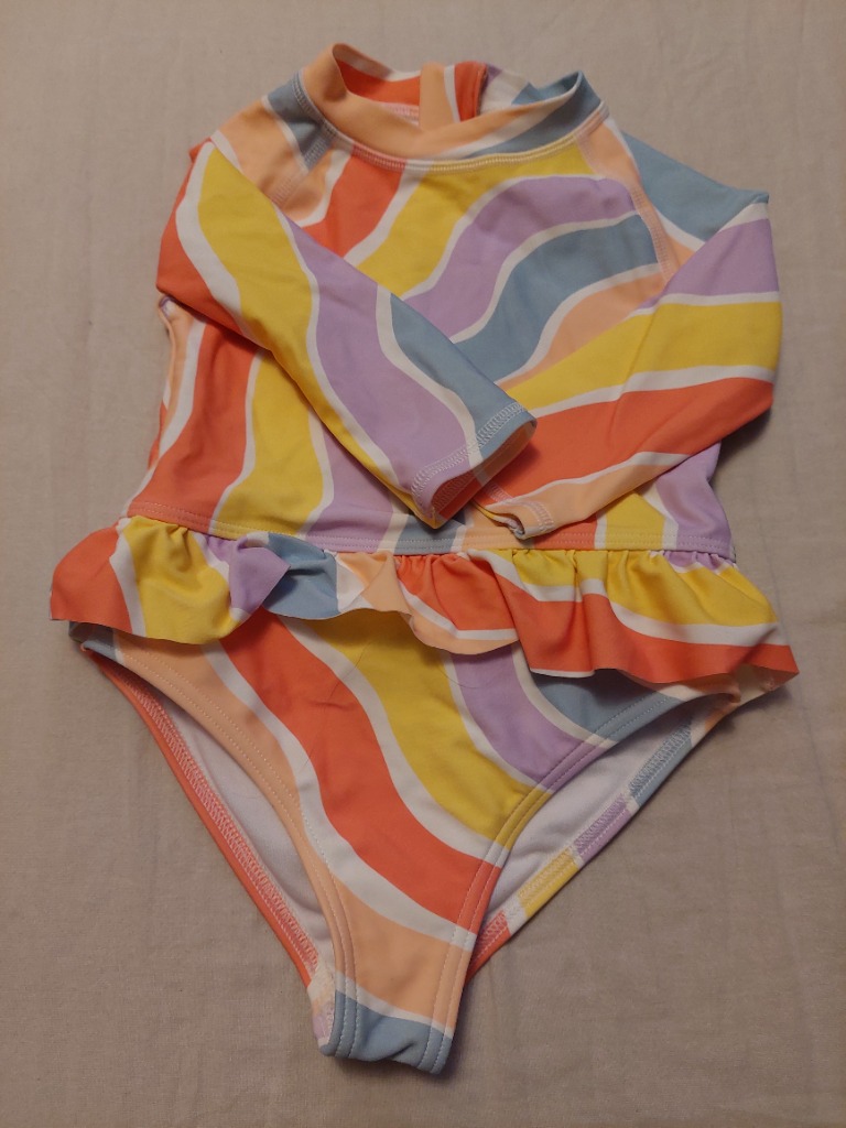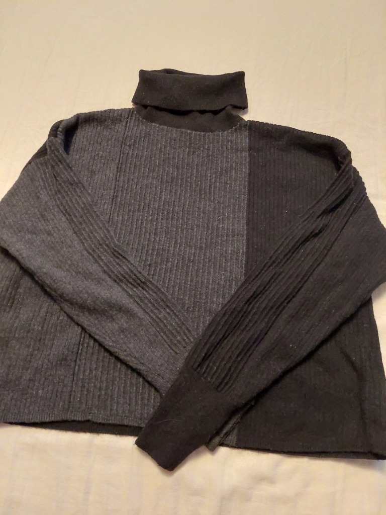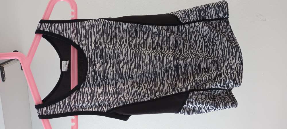 Hægt að renna alveg upp á báðum hliðum. Teygjan yfir axlir orðin mjög slöpp.