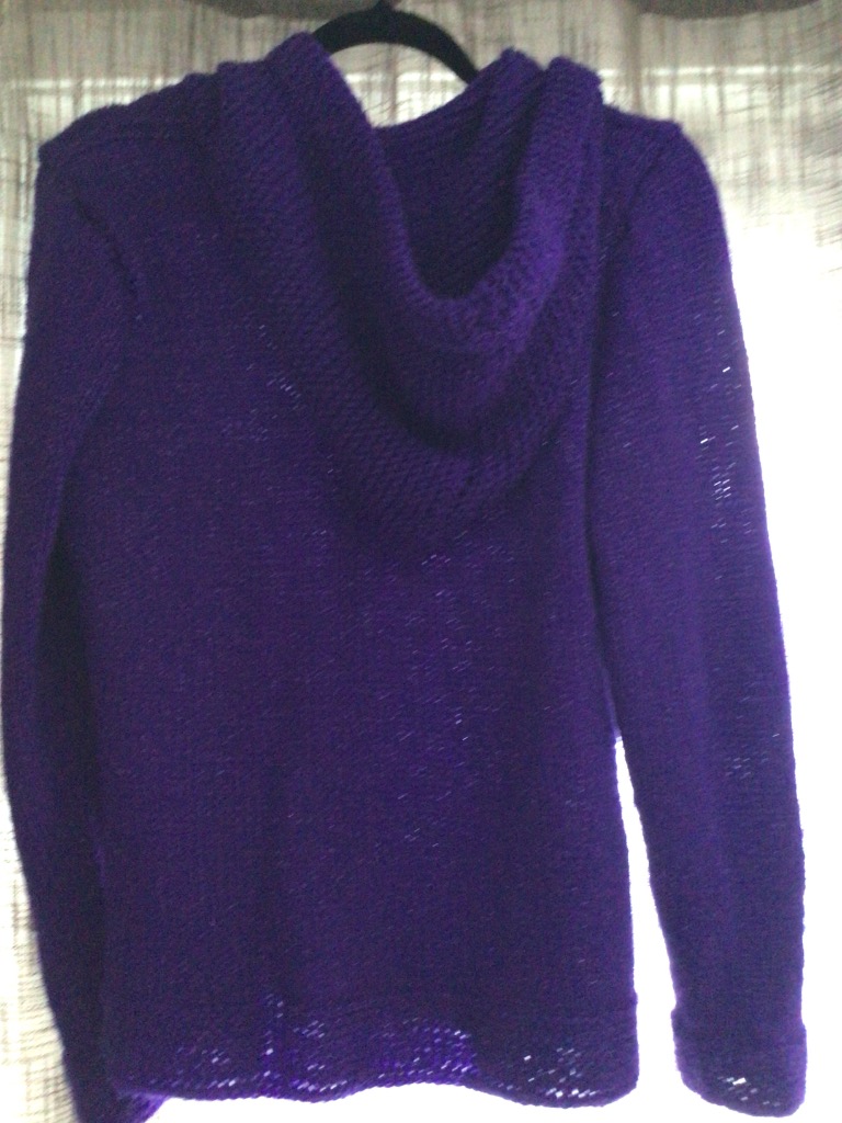 Fjólubrún síð hettupeysa (overzised) með gylltum stöfum
